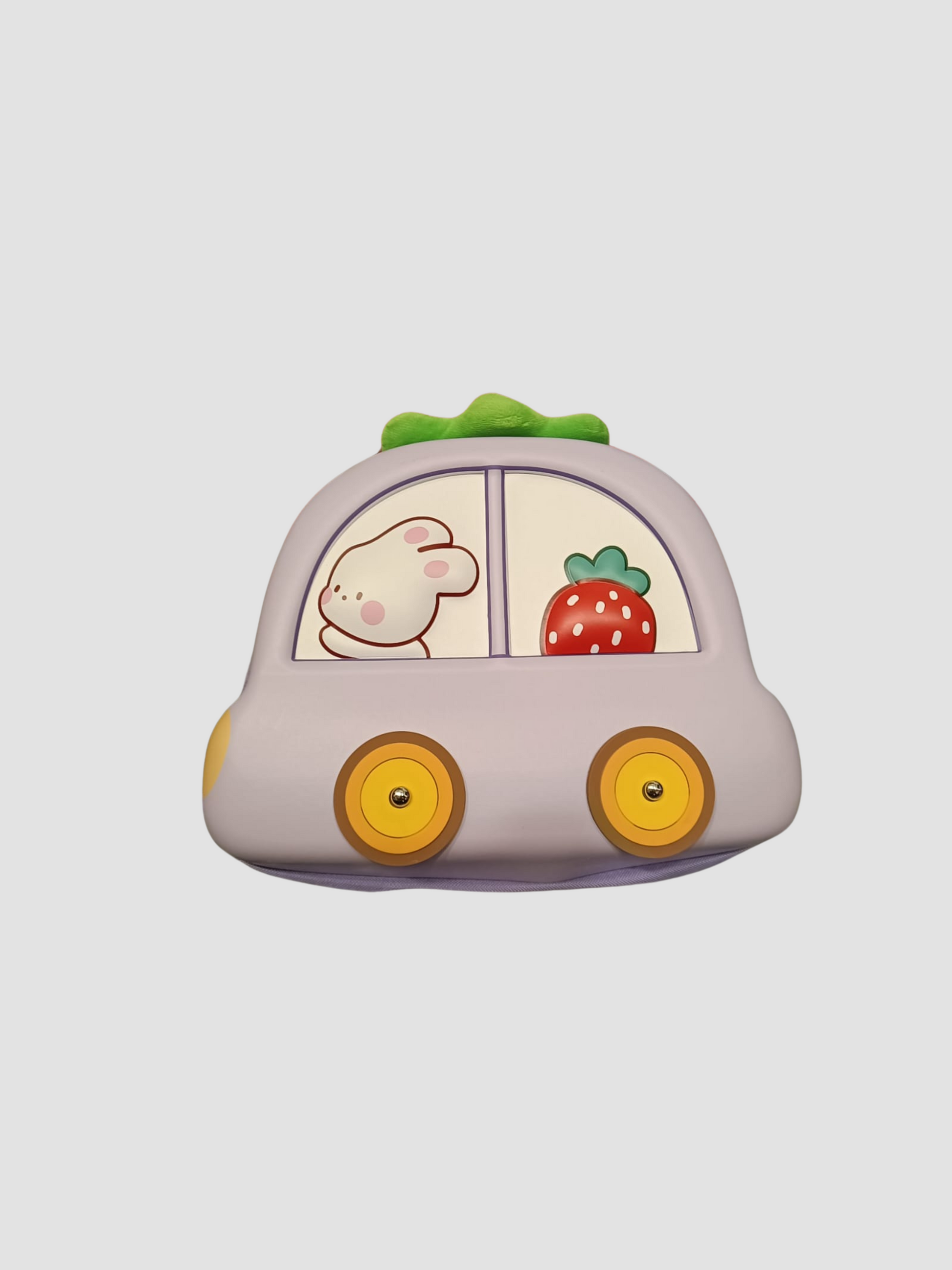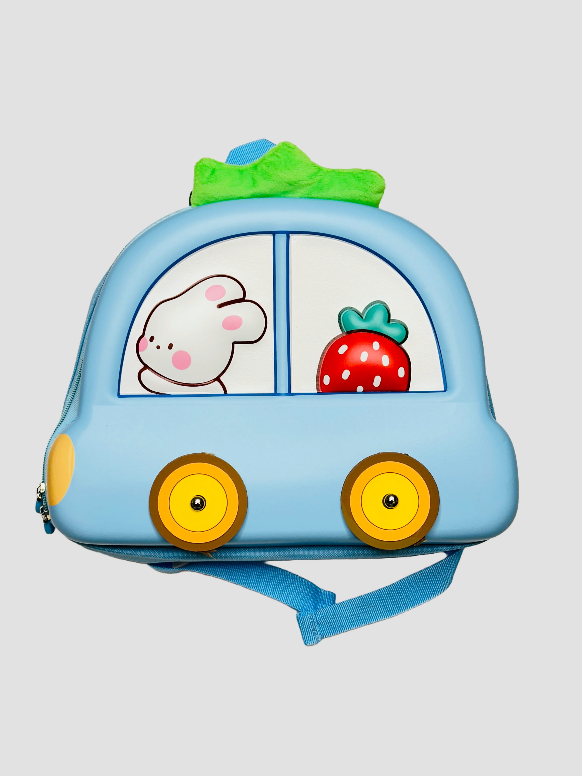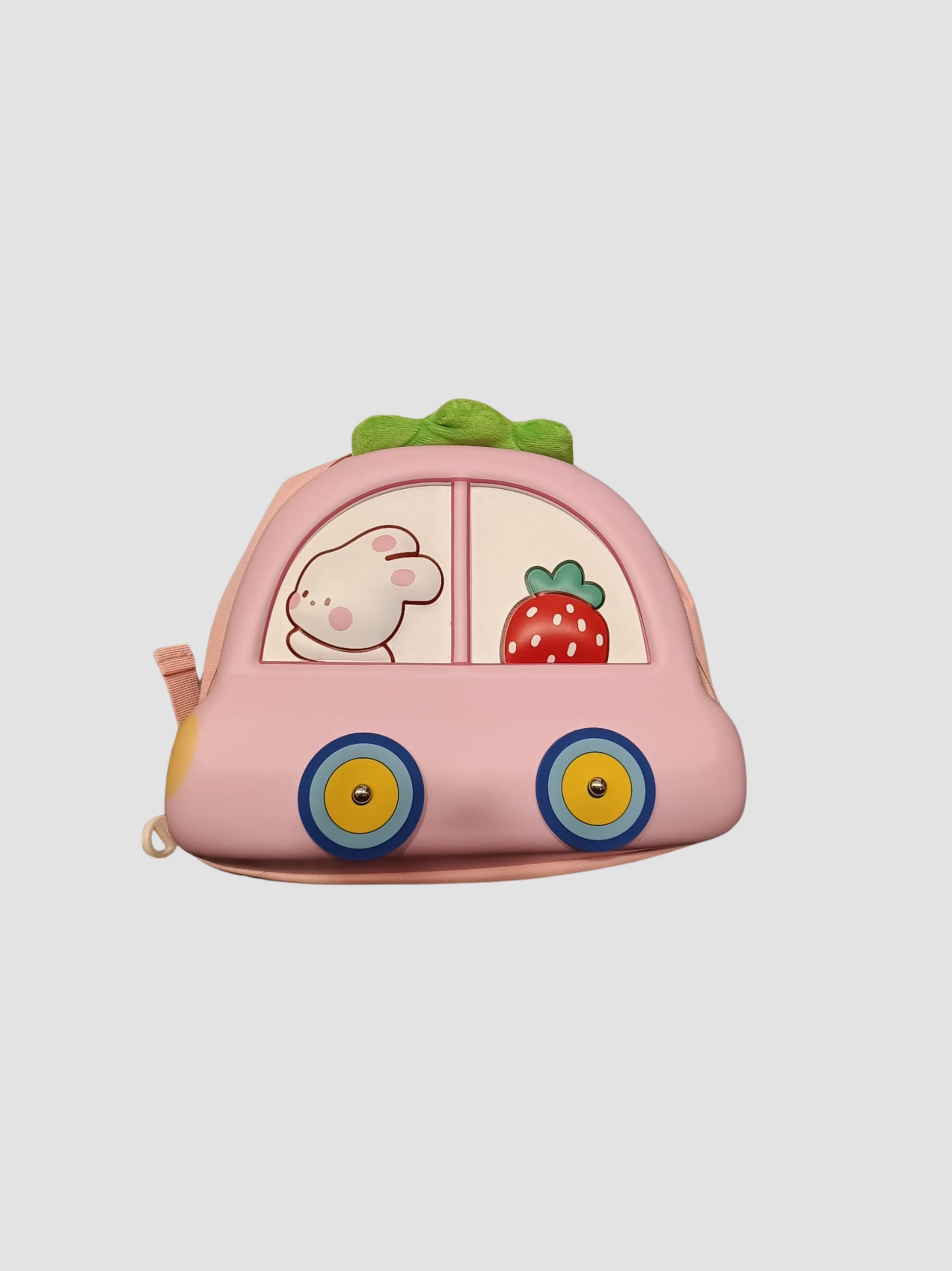 Car-Shaped Kids Backpack – Bunny & Strawberry | Red,Blue,Pink & Purple Colors
